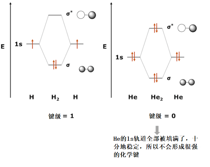 为什么水银常温下是液体呢?这里需要先思考H2分子和He2分子。 H2分子在键合σ轨道中容纳两个电子,键级为1,因此分子十分稳定。而在He2分子中,反键合σ*轨道也不得不容纳两个电子,键级为0。也没有可用于杂化的p轨道。这使He2分子成为非常不稳定的分子。事实上,He作为单原子分子是稳定存在的。