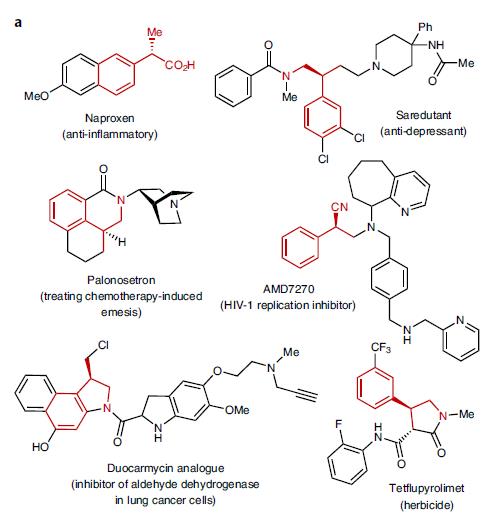 图1a. 医药和农业化学品中的芳香基丙腈衍生物